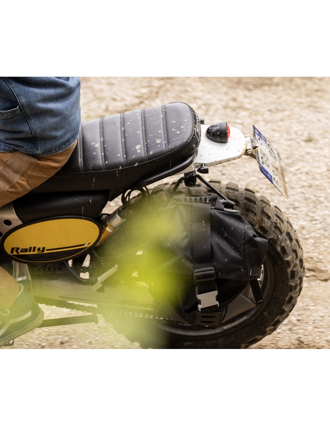 Kennzeichenhalter-Kit für Fantic Caballero. Der Halter ist in schwarz satiniertem Epoxidharz lackiert und ermöglicht die Wiederverwendung der originalen Kennzeichenbeleuchtung Ihres Motorrads.